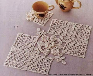 يتكون من ورد كروشية ايرلندي ومربعات كروشية فيليه